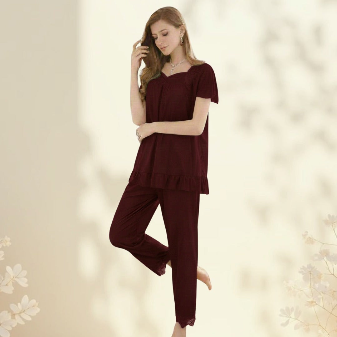Premium Two-Piece Nighty Set – Soft Stretchable Shirt & Trouser | Free Size